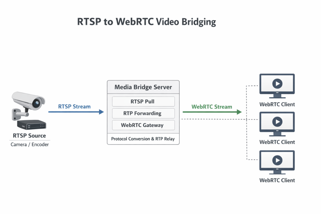 一种更直接且高效的思路,是利用WebRTC作为浏览器侧的实时传输协议,同时在服务端完成协议层的桥接,将RTSP流转换为WebRTC可消费的RTP数据流。这种方式避免了传统转码链路(例如FFMPEG+纯接口转发)带来的性能损耗,同时保留了实时性的优势。